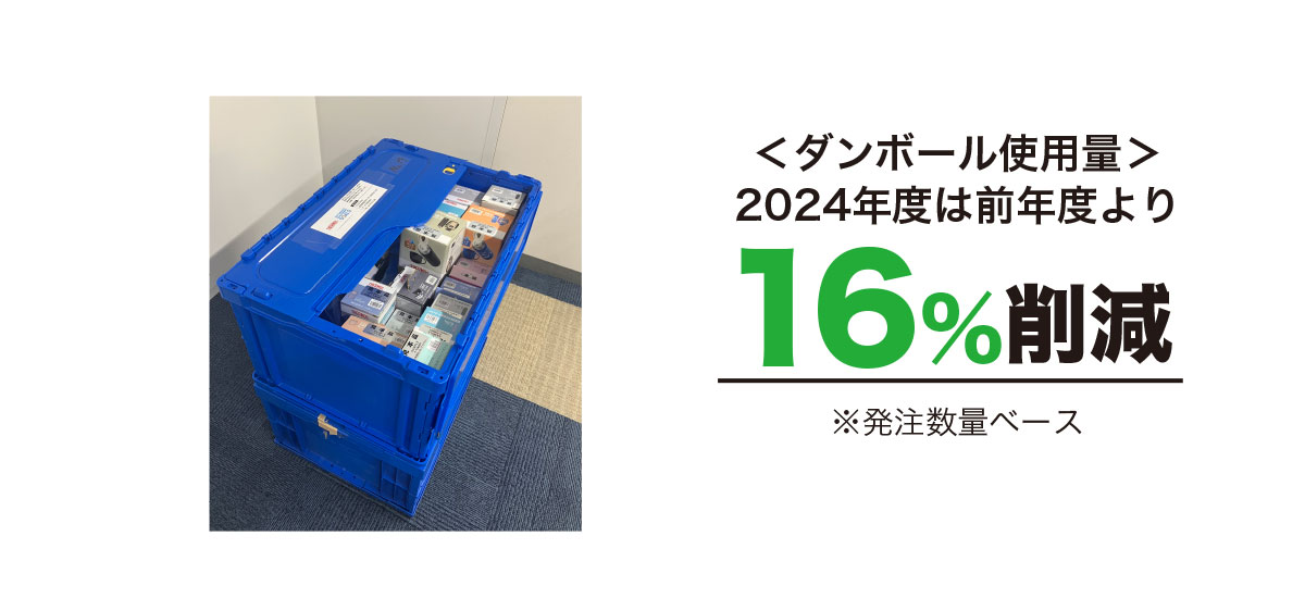 取引先様へのサンプル発送時等に繰り返し使用し、ダンボールの使用量を削減しています。