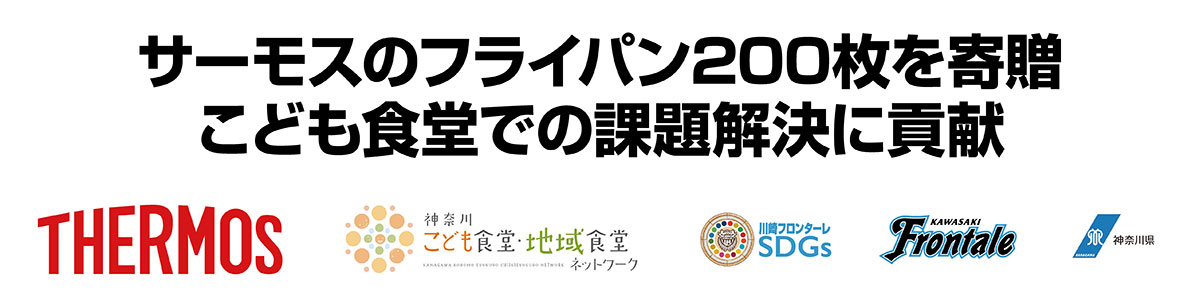 当社がオフィシャルパートナーとしてサポートしているプロサッカーチームである川崎フロンターレと連携し、こども食堂が抱える調理の効率化などの課題解決を支援するため、ステンレスポットやフライパン、真空保温調理器などの製品を寄贈。地域社会との共創を通じ、持続可能な社会の実現を目指しています。