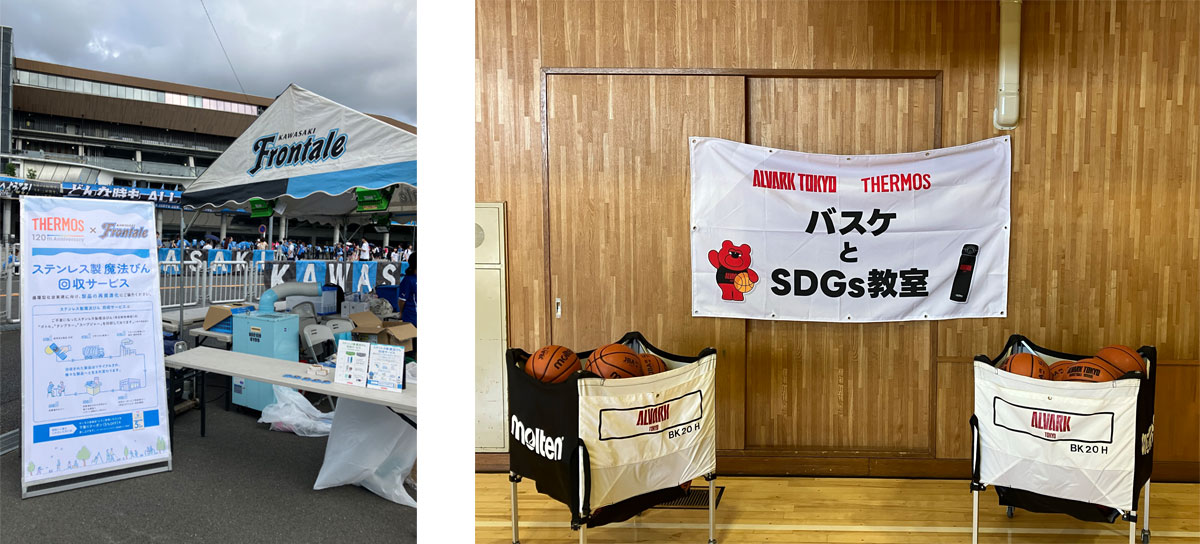 ペア席のサーモスシートを、国立代々木競技場第一体育館で行われたホームゲームで販売。808杯分の使い捨てドリンク容器の削減につながりました。【使用済みステンレス製魔法びんの回収】