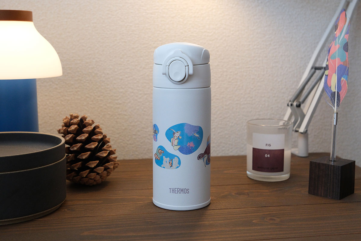 本商品は、当社が賛同・支援する「OIST サンゴプロジェクト」の趣旨に基づいて企画されたものです。サンゴ礁やウミガメのイラストが描かれた沖縄限定のデザインボトルで、沖縄県内のサーモスストア2店舗で限定販売しております。