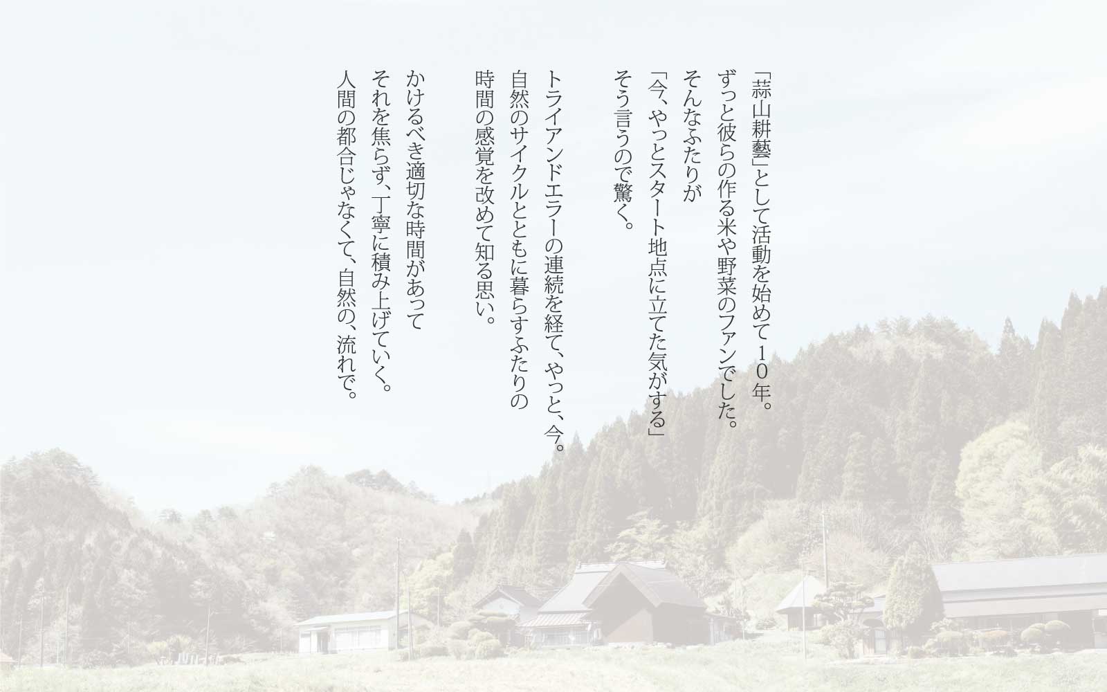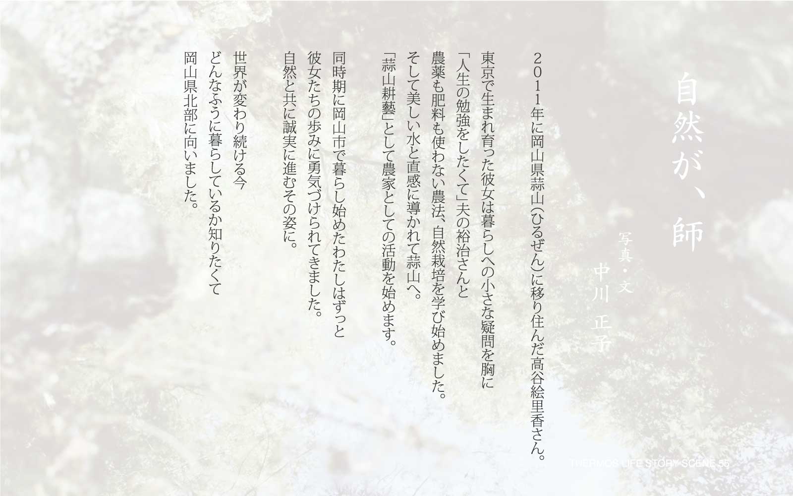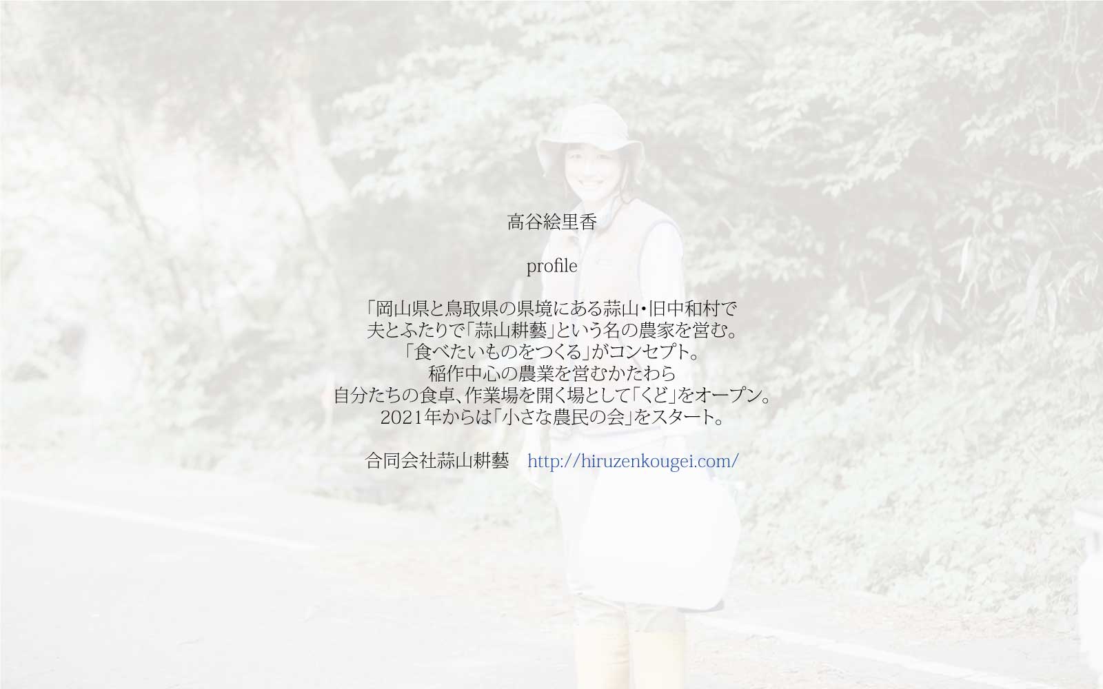 「岡山県と鳥取県の県境にある蒜山・旧中和村で夫とふたりで「蒜山耕藝」という名の農家を営む。