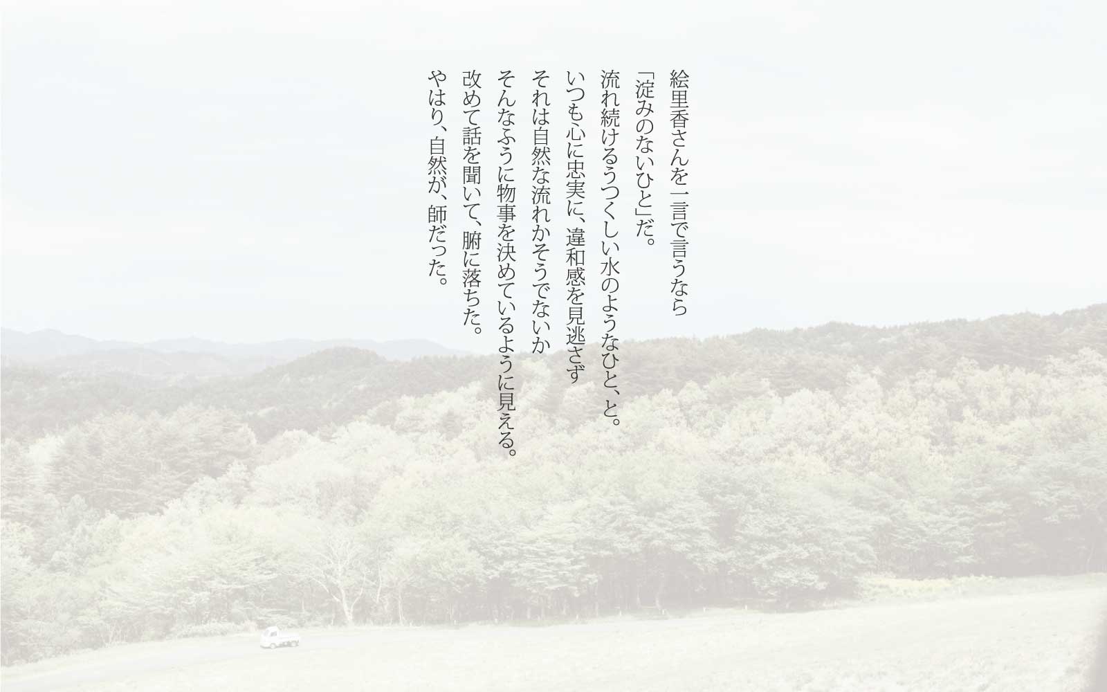絵里香さんを一言で言うなら「淀みのないひと」だ。