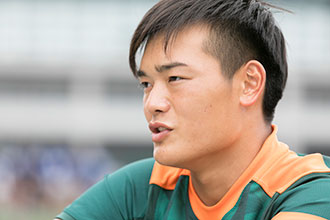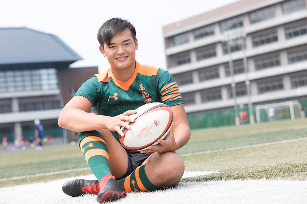 ラグビーは団体スポーツでは一番人数が多い、15人でやるスポーツです。15人もいるのに一人ひとりの役割が全て違って、奥が深いんです。僕はセンターというポジションなので、相手の間を抜く攻撃をしたり、トライ決めるのが仕事。身体の大きさを生かしたプレーができるとやりがいを感じます。キックとパスの精度をもっと上げて、花園予選ではチームの勝利に貢献できるよう、チームメートと一緒に頑張りたい。