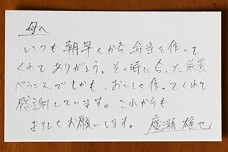 共働きで忙しいなか、毎日サポートしてくれる父と母のためにも、ケガを早く治したい。11月にはスタメン復帰して元気にプレーする姿を家族に見せたいです。