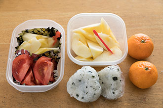 野菜はたっぷり、種類も多く使っています。本人も野菜好きで、特にトマトが大好物。毎日5〜6個は食べます。すごいですよね? 入れると喜ぶメニューは卵焼き。梅干しも大好きなのでよく入れています。