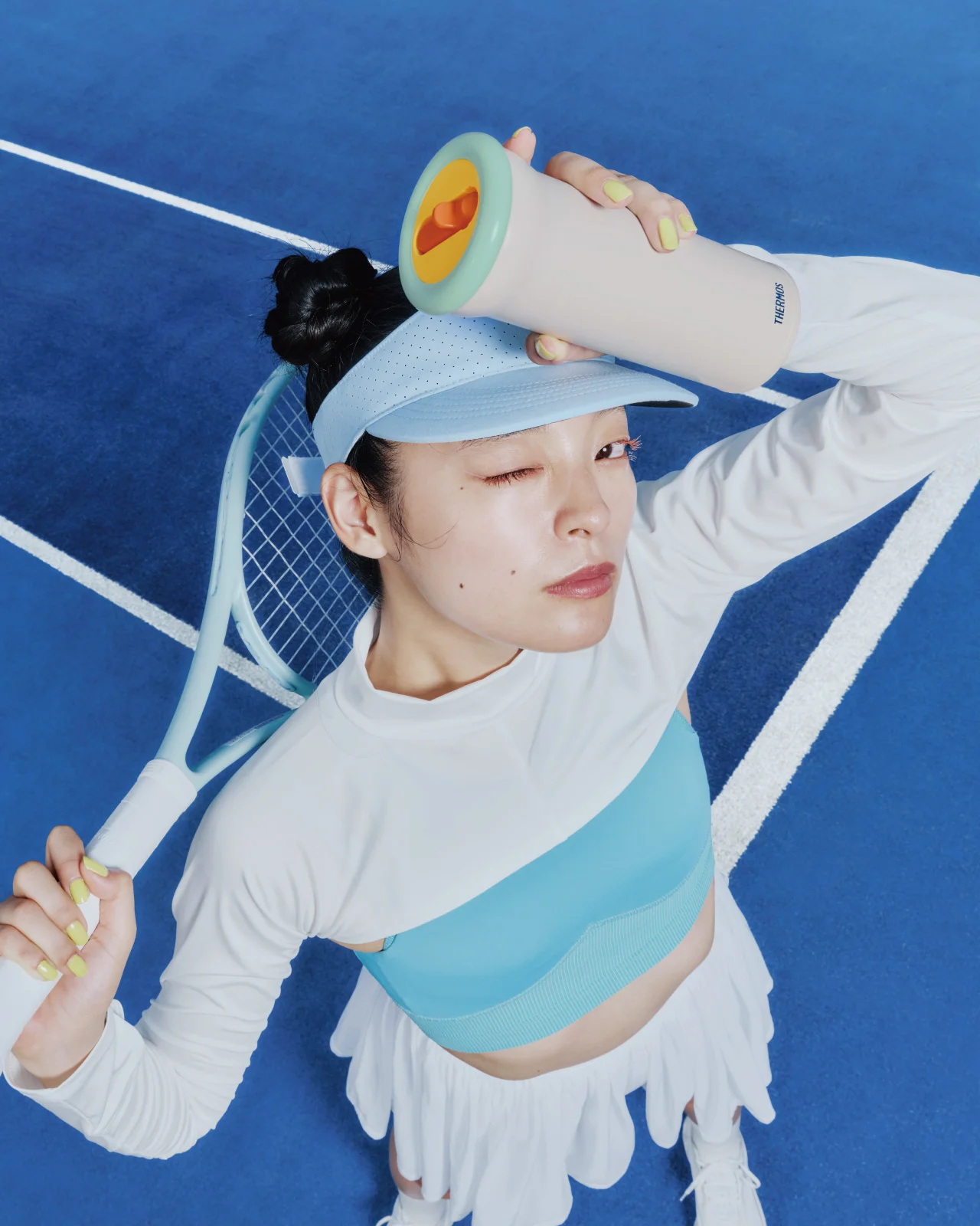 爽やかなブルーとアクセントのイエローがスポーティーで、印象的なカラー。