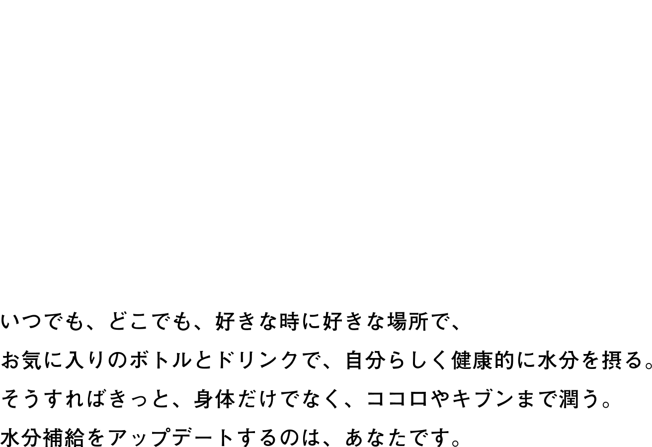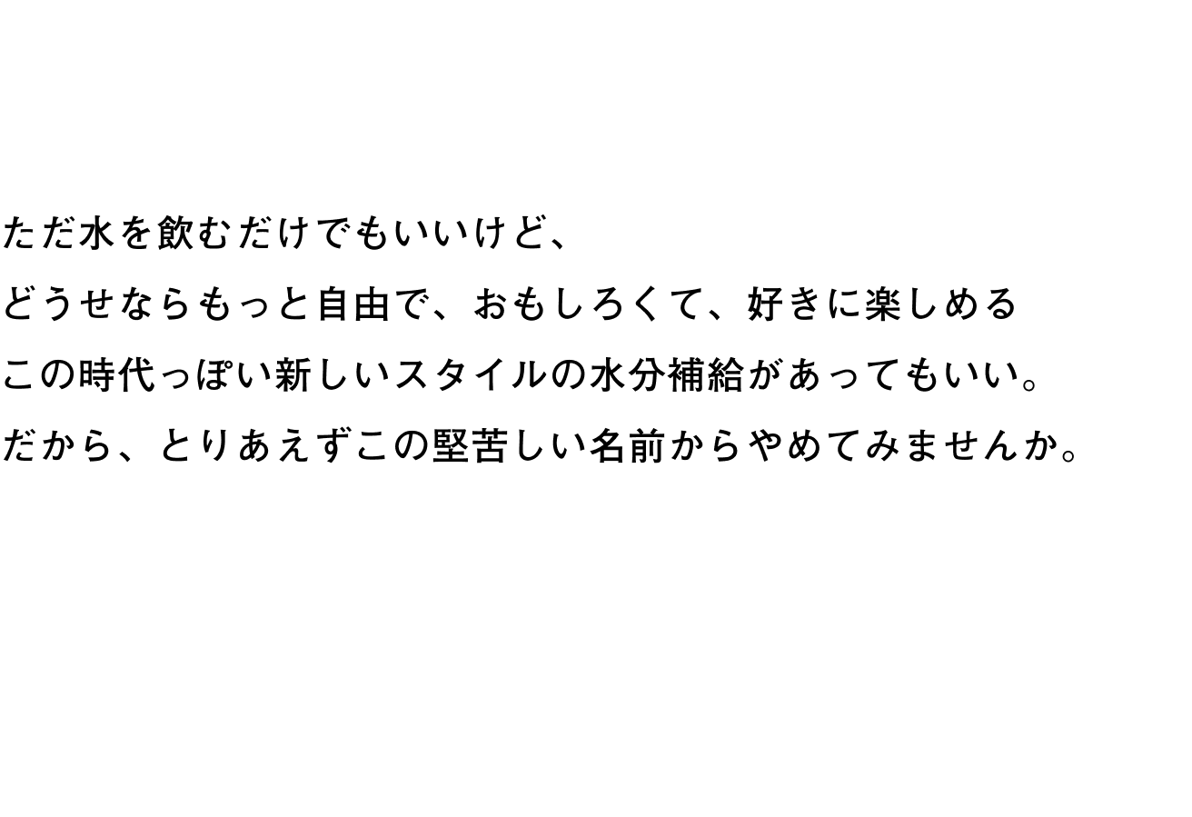 キューブを水や炭酸水に落として楽しむ、新しいドリンク!毎日の水分補給をサポートします。400~600mlでご使用ください。
