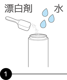 ボトルに漂白剤、水の順に入れ、よく溶かす。