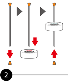 電極棒の片方のキャップを引っ張ってはずし、洗浄器本体の上から差し込む。取り外したキャップを取り付ける。