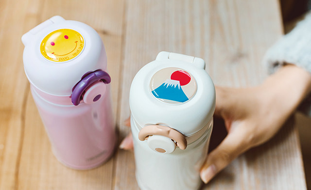 JNRシリーズは『サーモス 真空断熱ケータイマグ』の新シリーズで、せんユニット上部のプレートを自分好みにカスタマイズできます。丸みを持たせ大きくしたロックリングとボタンで、片手でも扱いやすい操作性と愛着の湧く可愛らしい見た目が特徴です。ステンレス製魔法びん構造の高い保冷・保温力で飲みものの温度をキープし、軽量コンパクトで持ち運びも楽々。更に別売のJNRカスタマイズプレートを使うことで、プレートやボトルにシールを貼って、オリジナルボトルにアレンジすることができます。シールは水に強く剥がれにくい素材だから、ボトルのお手入れ時も安心です。