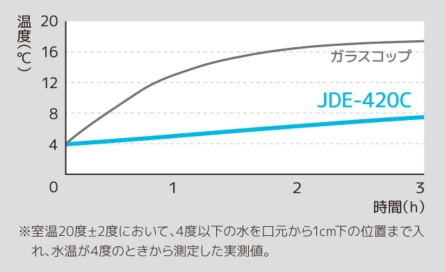 保冷性能比較 (JDE-420Cとガラスコップの比較)