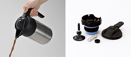 本製品は、ステンレス製魔法びん構造の真空断熱ポットへコーヒーを直接ドリップし、魔法びんの保温力でそのまま保温できるのが最大の特長。コーヒーが煮つまることなく淹れたてのおいしさをキープし、保温中は電源不要のため、そのまま卓上に移動してもお使いいただけます。また、ポットに氷を入れてドリップすればアイスコーヒーも簡単に作れます。ポットはステンレス製だから氷を入れても割れないので安心です。