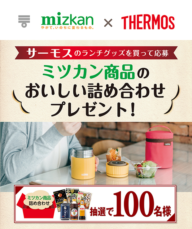 抽選で100名様に当たる!!サーモスのランチグッズを買って応募 ミツカン商品のおいしい詰め合わせプレゼント!キャンペーン開始!!
