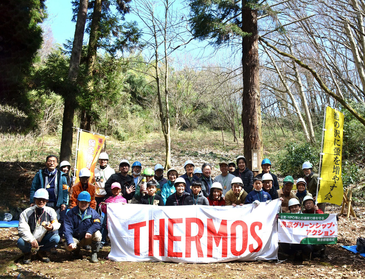 東京都環境公社、NPO法人緑サポート八王子、池の沢に蛍を増やす会の15名、サーモス社員とその家族16名、総勢31名が参加しました。