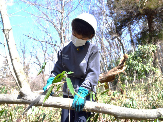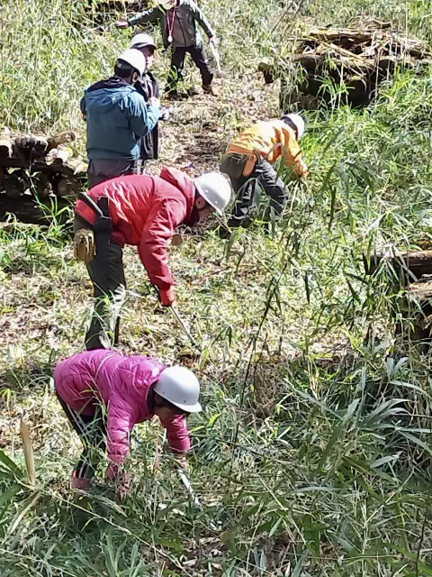 特定の樹種に日差しを届けるために、同じ方向に下草を刈る「下草刈り」を行いました。