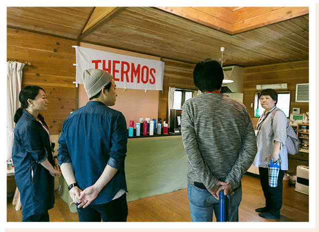 当日は、12時より受付開始。ワークショップが始まるまでの自由時間、サーモス製品を並べた常設展示を各々に見学していただきました。