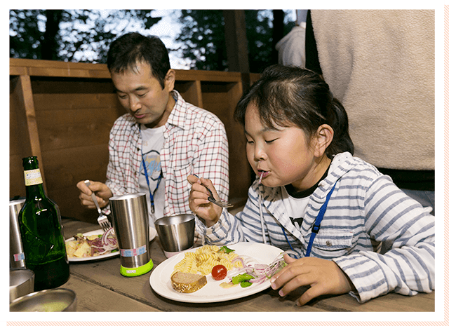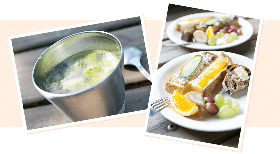 シャトルシェフで作った野菜たっぷりのスープなど、アウトドアにぴったりのメニューをご提供。
