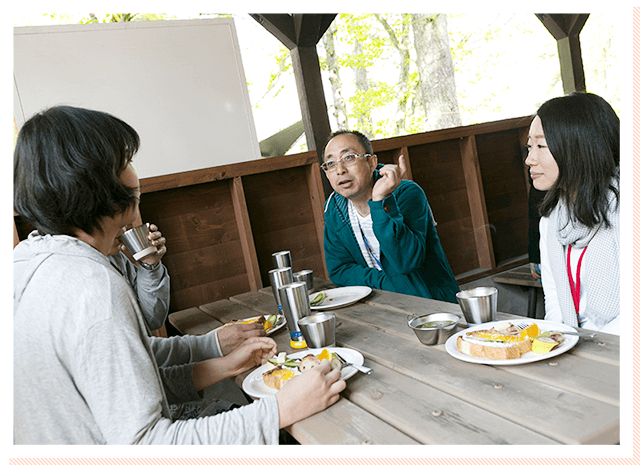 清々しい空気の中、自然と会話も弾みます。
