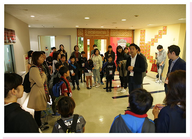 イベント開始前、ヴィッセル神戸の広報を務める辻本さん手引きのもと、スタジアムツアーが行われました。