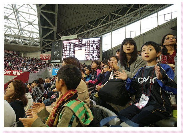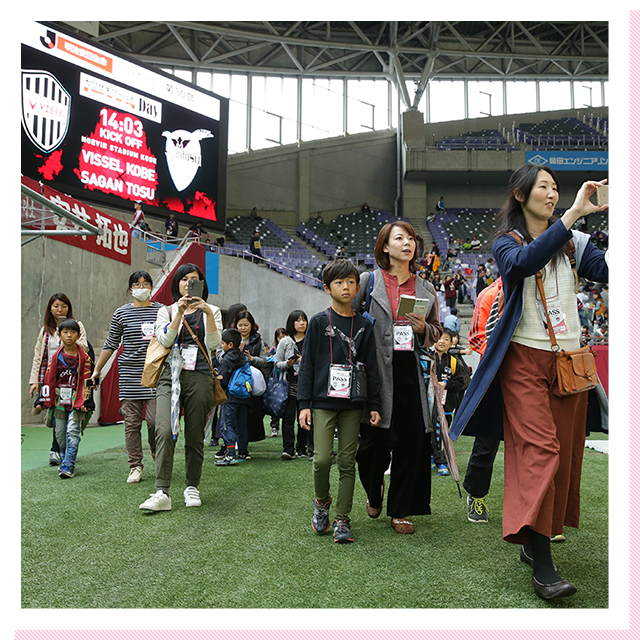 イベントの第2部では、ヴィッセル神戸vsサガン鳥栖を観戦。 ヴィッセルサポーターの地鳴りのような歓声の中、試合開始早々にエースのポドルスキがゴール!幸先のよいホームでの先制点に、キッズもママも大喜び。