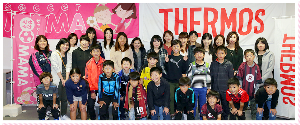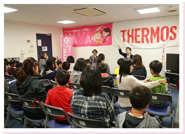 イベント参加者には、サーモスのケータイマグ、シールを貼ってマイボトルをかわいく装飾できるカスタマイズプレートのプレゼントが手渡されました。今回のイベントの感想を聞くと、参加したキッズもママも一堂に「大満足」の様子。ママからは「次回の観戦はスープジャーをぜひ持っていきたい!」、キッズからは「ボールのないところの動きに注目したい」などの声をいただきました。サッカー観戦力が身に付き、学べて楽しい、充実したイベントとなったようです。