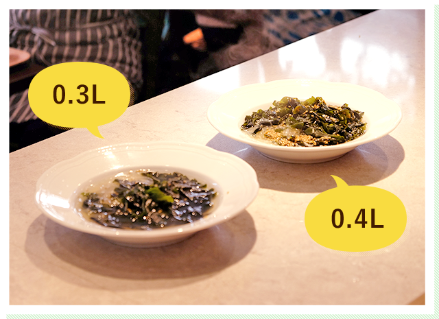そこで今回は0.3Lと0.4Lのスープジャーで作った春雨スープをお皿に出してみました。スープジャーってコンパクトに見えるんですが、意外とたくさんの量が入ります。0.4Lって結構な量なんだと驚いている方もいました。いつも使っているお皿で量を確かめてみるもの良いかもしれませんね。