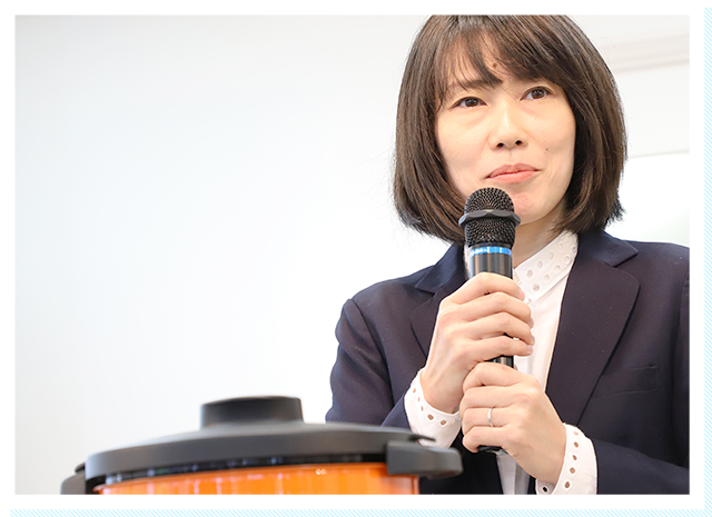 田内さんは、「時間がない」という悩みに共感。「働いているお母さんはもちろん、介護をしている人など本当にいろんな方たちから『時間がない』と聞きます。若いママたちからよく聞くのは、『家事にしても育児にしてもまだ、女性の負担になっている』ということ。最近の女性は勉強や仕事に打ち込んできて料理の経験があまりない方も多くいます。そのような方が結婚・出産を機に料理やその他の家事、育児を任され、すべてを抱え込んでしまい苦しんでいる方が多いと感じています」とお話しされました。