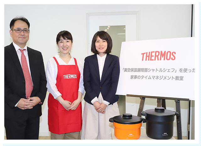 この悩みの解消に田内さんは、「そんなにたくさんの種類を作る必要はない」とコメント。とくに育児休暇から復帰したばかりの方は、育児休暇中と同様に家事をこなしつつ、仕事も頑張ってしまう傾向が多いと注意を促しました。その上で「『シャトルシェフ』をおすすめ。例えば、忙しいと炒め物中心になり、時間がかかる煮物や汁物は作りづらいですが、『シャトルシェフ』を使えば、朝に5〜10分程度煮込んだものを保温容器に入れるだけで、調理時間は変わらないのに食材に味がしみた美味しい煮物を食卓に出すことができます。