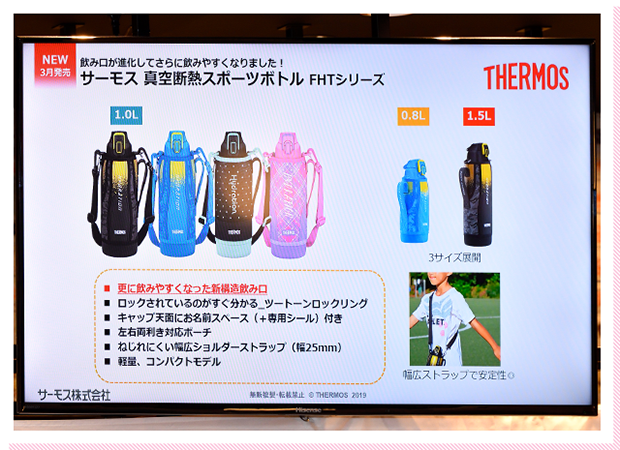 新発売の「サーモス 真空断熱スポーツボトル FHTシリーズ」や「サーモス フィールドポット THY-1500」をはじめ、スポーツキッズを持つママに最適なアイテムを紹介しました。