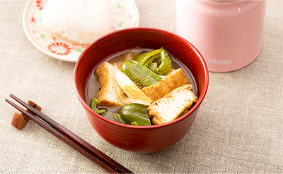 厚揚げとピーマンの炒め味噌汁