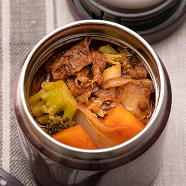気と血を補う牛肉をたっぷり使用した、ハヤシライス。栄養バランスを意識した野菜も炭水化物も温かく食べられるスープジャーを活用してみてください。