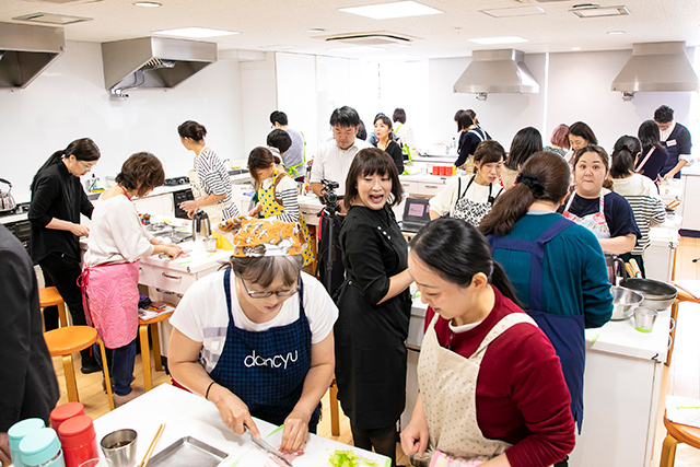 料理家・弁当コンサルタント 野上優佳子さんと、一般社団法人フードサルベージ 代表理事 平井巧(さとし)さんをお招きして2018年10月30日(火)に、『第1回 サーモス スープジャーで冬のあったかお弁当教室』を開催。昨今話題となっている「フードロス」に着目し、家庭で余りがちな食材を使ったスープジャーレシピを教えていただきました。さらに平井巧さんによる「明日からすぐできるフードロス講座」も行われ、約20名の女性が参加しました。