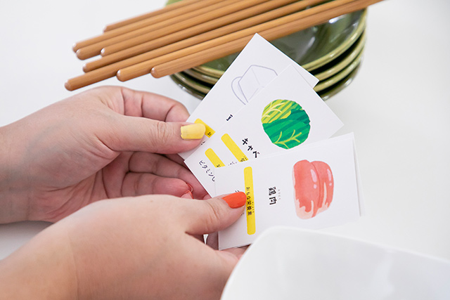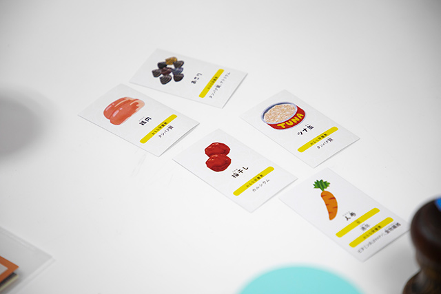 また、食材が書かれたカードを参加したグループごとに数枚配り、それで何が作れるかメニューを考える時間を設け、改めて買い物に出かけなくても自宅にある食材だけで料理は作れることを伝えました。