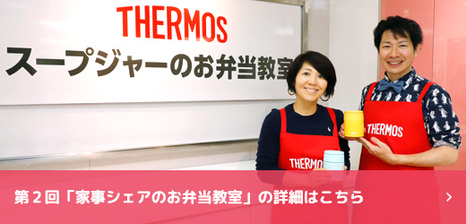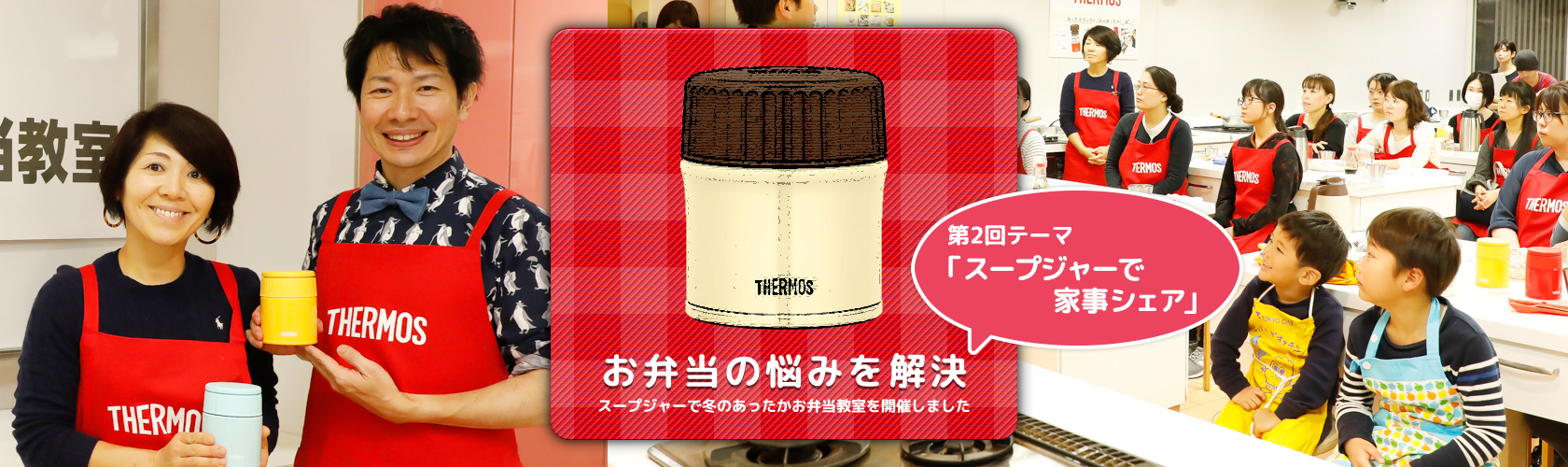 高い保温力を持つサーモス真空断熱スープジャーの活用方法と、今すぐ真似できるレシピをご紹介した実践的なお弁当教室。これで、皆さんのお弁当作りのハードルも下がったのでは? 家族のために簡単にできることから、家事シェアを実践してみてはいかがでしょうか。