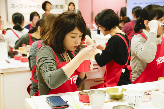 2018年12月3日(月)に『第3回 サーモス スープジャーで冬のあったかお弁当教室』を開催しました。今回も引き続き、料理家・弁当コンサルタント 野上優佳子さんをお招きして、飲み会や外食が続き、体調・体重管理が気になるときにおすすめのスープジャーの活用法を伝授していただきました。