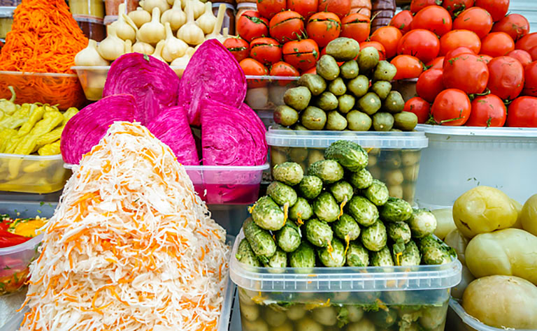 このほか、シベリア風、ウクライナ風、キエフ風などがあり、地方色豊かなのは日本のお雑煮のようですね。ちなみに、ロシアはソーセージなどの加工肉や野菜の漬物がとても豊富。短い夏の間にたっぷりと肉や野菜を仕込んで保存食を作り、長い冬を乗りきるのが暮らしの知恵です。