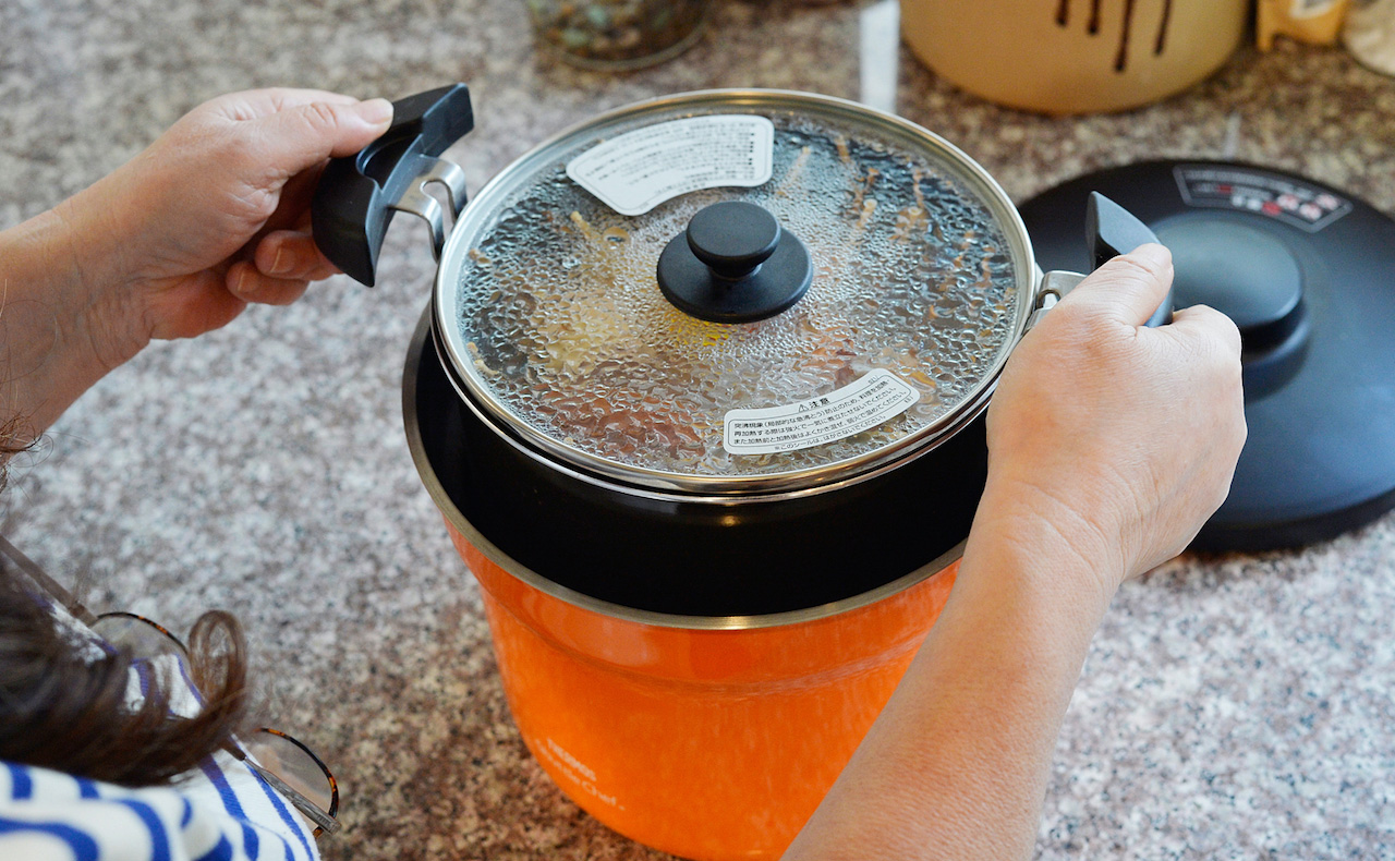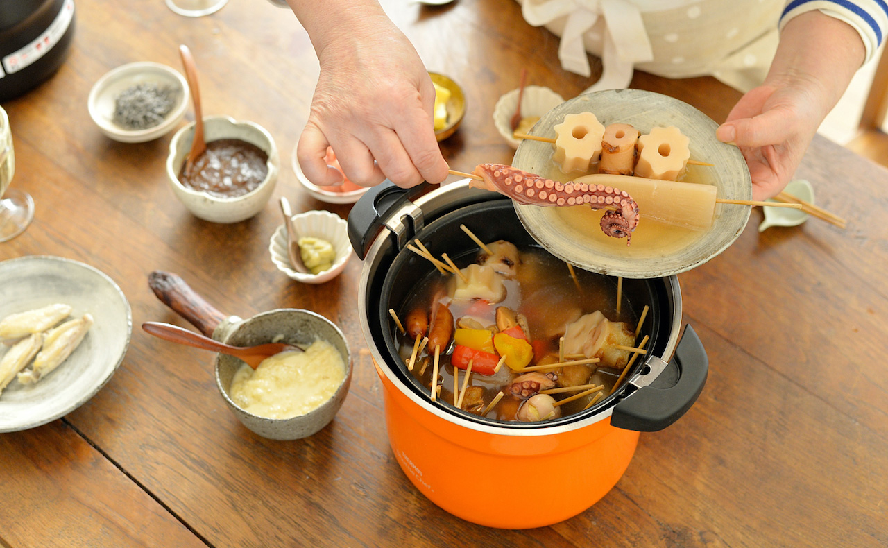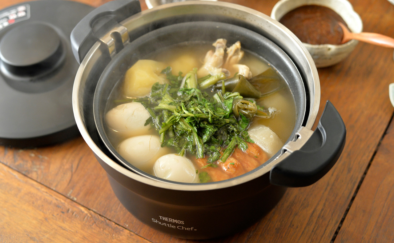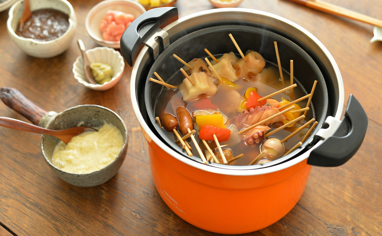 今回のおでん作りに使ったのは、短時間火にかけた調理鍋を保温容器で保温する「シャトルシェフ」。余熱で食材に火を通すから、素材本来の風味や旨みを生かしながら、しっかり味が染み込んでいきます。