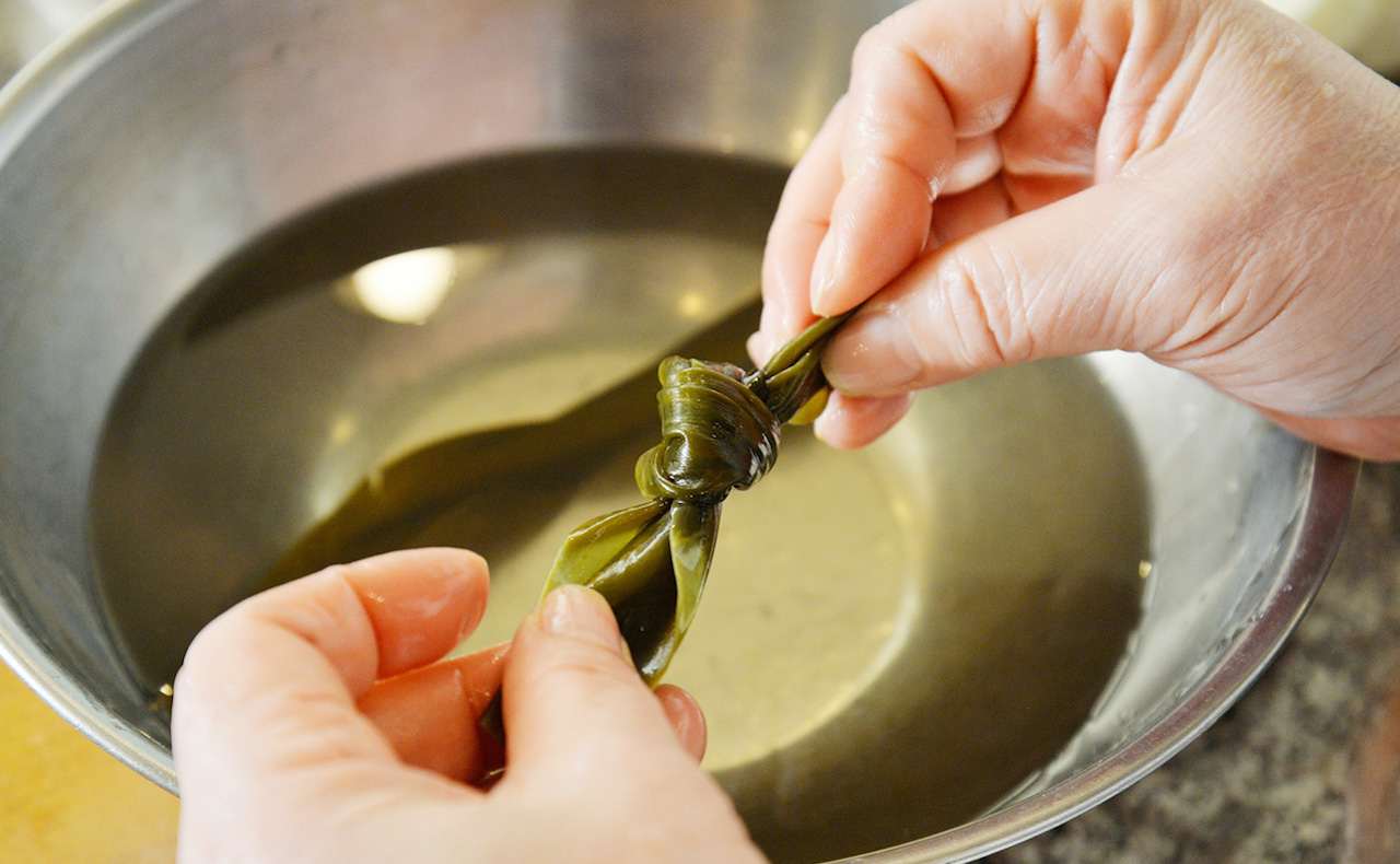 ●結び昆布:水に5分ほど漬けて、しんなりしたら結ぶ。