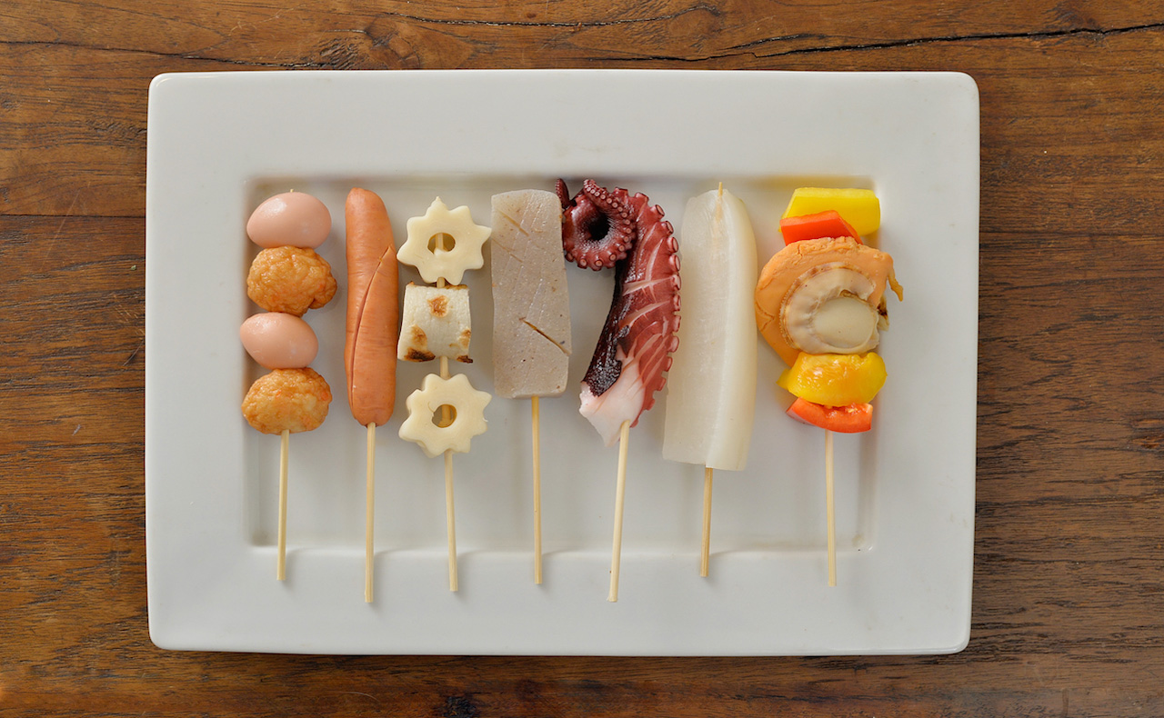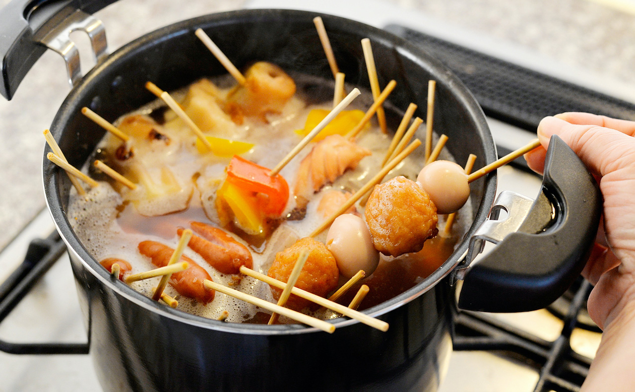 同じおでんでも、ひときわ花を添えてくれるのが「串のおでん」。具が小ぶりなので火が通りやすいほか、キュートな見た目で食卓を楽しませてくれます。