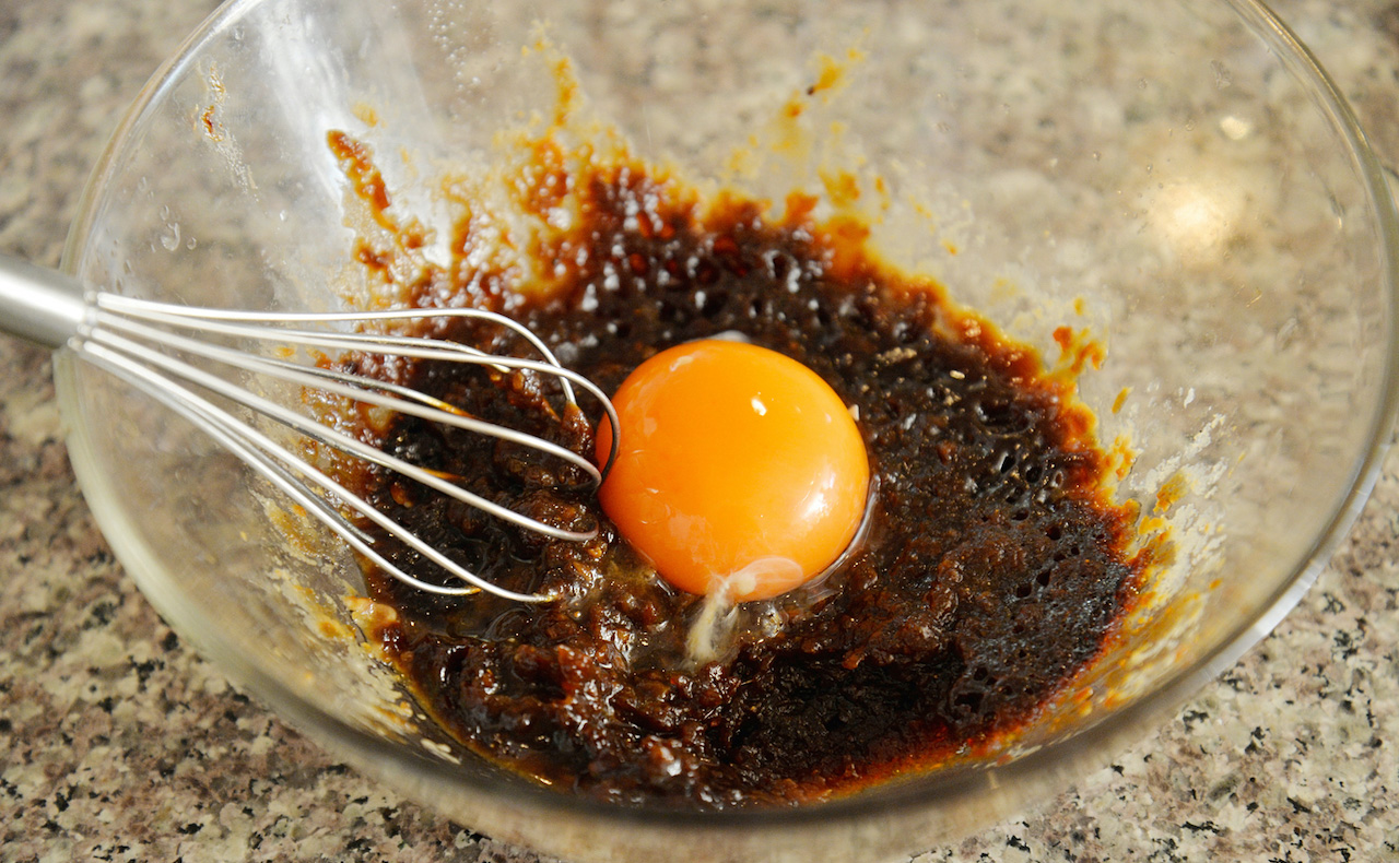 味噌(大さじ5)・砂糖(大さじ2)・みりん(大さじ3)を混ぜ、電子レンジで3分間温める。熱いうちに卵黄(1個)を加えて混ぜれば完成。