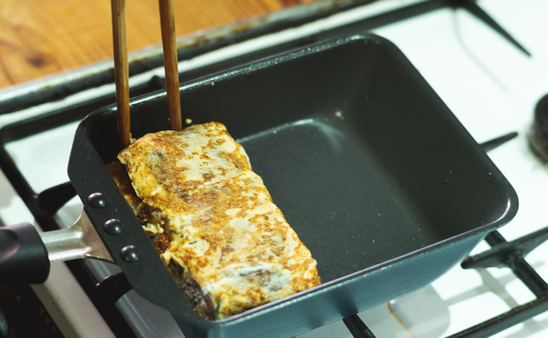 上手に巻くのは、練習あるのみ! とのことですが、玉子焼きを焼く道具についてもぜひアドバイスをいただきたいところ。玉子焼き専用の調理器を持っていない場合、丸型のフライパンで玉子焼きを作ることもありますが、山田さんと山口さんによると、玉子焼き専用の調理器を持っておくことが上手に焼ける近道になるそう。