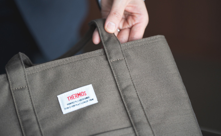 実は、近さんにお話を伺うまでは100円ショップの保冷バッグを使っていたライター・関。今まで気にしたことがなかった保冷バッグ内部の厚みや縫製を家で確認してみると、改めてサーモス製品のクオリティの高さと、こだわりを実感……。これまでは保冷バッグもエコバッグも、デザインや値段だけを見てなんとなく購入していたことに気がつきました。
