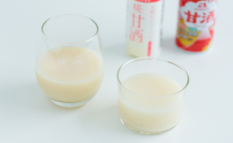 米麹にお湯を加え、温度60℃前後を保って加熱し続けて作る。米のデンプンが分解されブドウ糖やオリゴ糖に変化して、自然な甘味ですっきりとした味わいが特徴。アルコールが含まれていないので、お子さまや妊娠・授乳中の女性も安心して飲むことができる。
