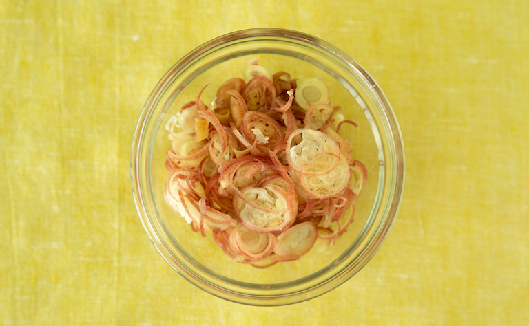 1. すべての薬味をボウルに入れて、3分ほど氷水にさらす。