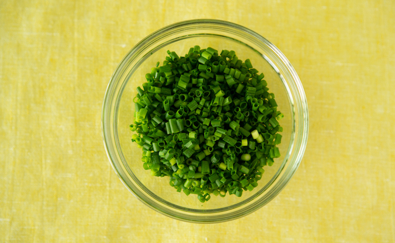 1mm幅の小口切りにする。時間がない人はパックのねぎを使えば時短に。