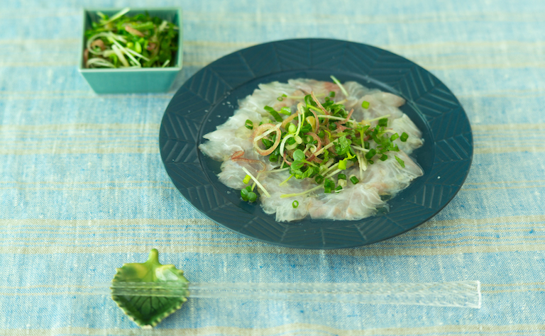「お好みのお魚にたっぷりの薬味とオリーブオイルをかけたら、あっという間にカルパッチョの出来上がりです。暑い時期に生ものを食べるときは、薬味があると安心です」