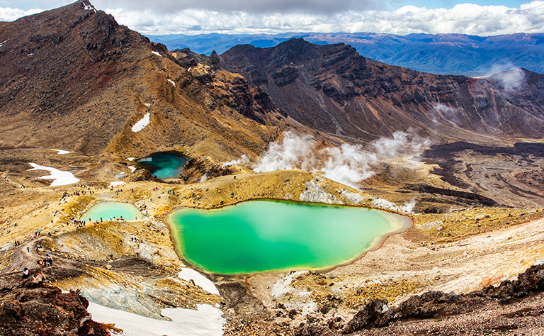 また、冥王サウロンの本拠地・モルドールのロケ地となったトンガリロ国立公園も見ごたえ満点です。園内には3つの火山がそびえ、一帯は火山活動によってつくられたクレーターや湖があり、奇観が楽しめるトレッキングコースが用意されています。