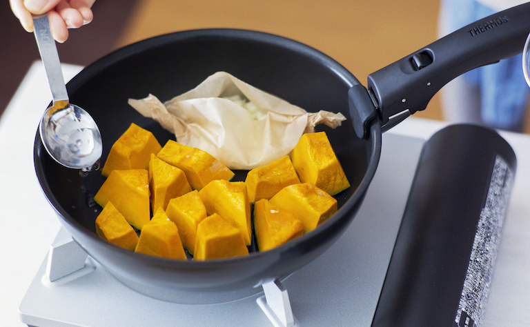 「実は練馬って畑が多い土地なんです。おいしい野菜がたくさん採れるので野菜好きにはたまりません。かぼちゃは、ホクホクとした食感とやさしい甘さが魅力ですよね。ビタミンやカロテンなど栄養たっぷりで長期保存もできるから、冬至はもちろん一年中楽しめるレシピをご紹介します。動物性の食材不使用なので、ヴィーガン、ベジタリアンの方もお召し上がりいただけます」