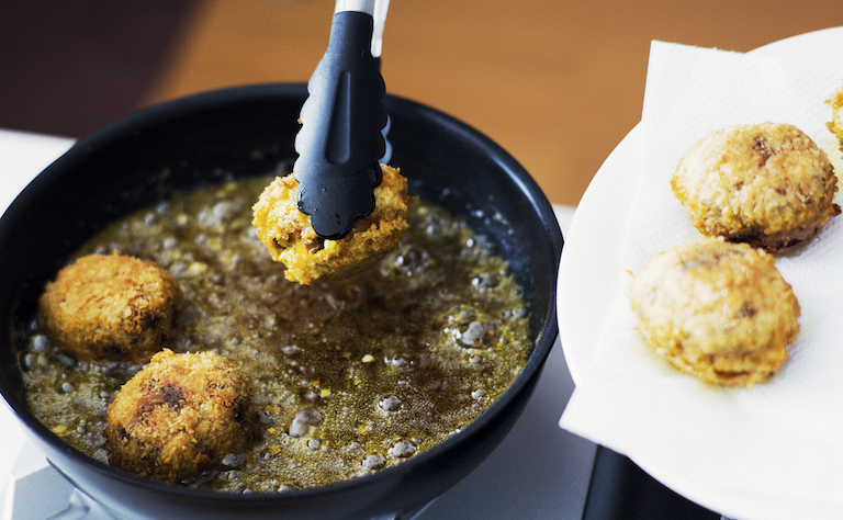 さらにもう1品「かぼちゃとくるみのコロッケ」のレシピも教えていただきます。メニュー名にもあるくるみのほか、味噌も隠し味で入っているそう。