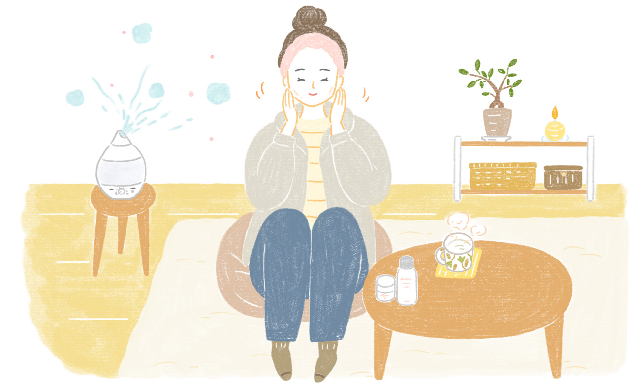 「エアコン暖房は空気が乾燥しがちです。加湿器を併用して60%前後の湿度キープを目指しましょう。また、エアコンからの送風が肌に直接当たらないように気をつけてください。オイルヒーターなど空気を乾燥させない家電も上手に取り入れましょう」(石原先生)